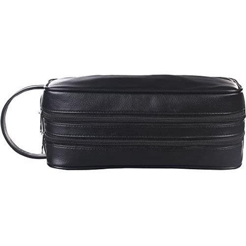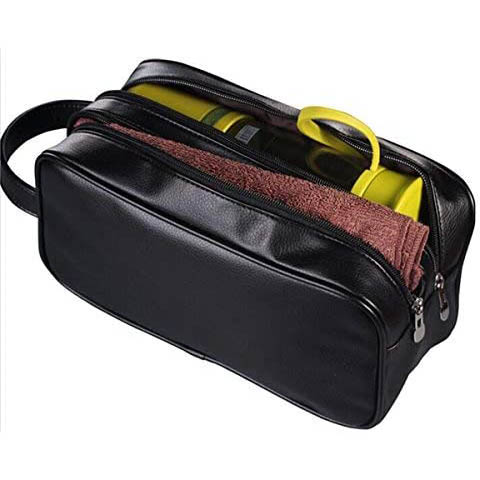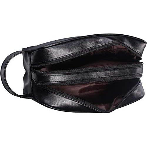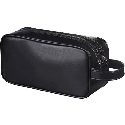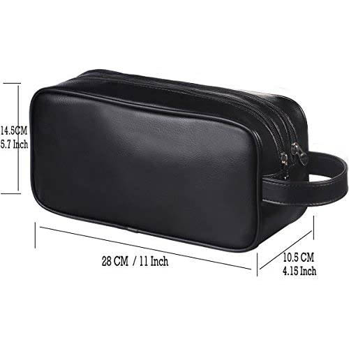 Feature:Soft PU Leather Zipped Travel Toiletry Bag, Portable Shaving Bag, Dopp Kit Travel Organizer